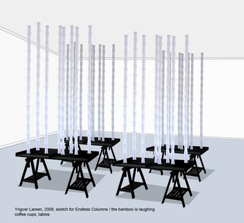 Hvis man tenker at hver marmor bit som meisles av er en negasjon, ”skulpturene er ikke lik denne marmor biten” er det den samme metoden som jeg bruker i dette arbeidet, bare at jeg har byttet ut marmor med våre (sanse)opplevelser. Ideen er at når jeg har kommet med mange nok negasjoner vil det sakte men sikkert danne seg en unevnelig form, en skulptur som tendere til å bli ren ”ånd”.