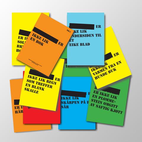 I tekst arbeidet Negasjons skulptur (not like a book), som på utstillingen har blitt omdannet til flagg som henger på snorer tvers over gallerirommet. Har jeg tatt utgangspunkt i to tanke
